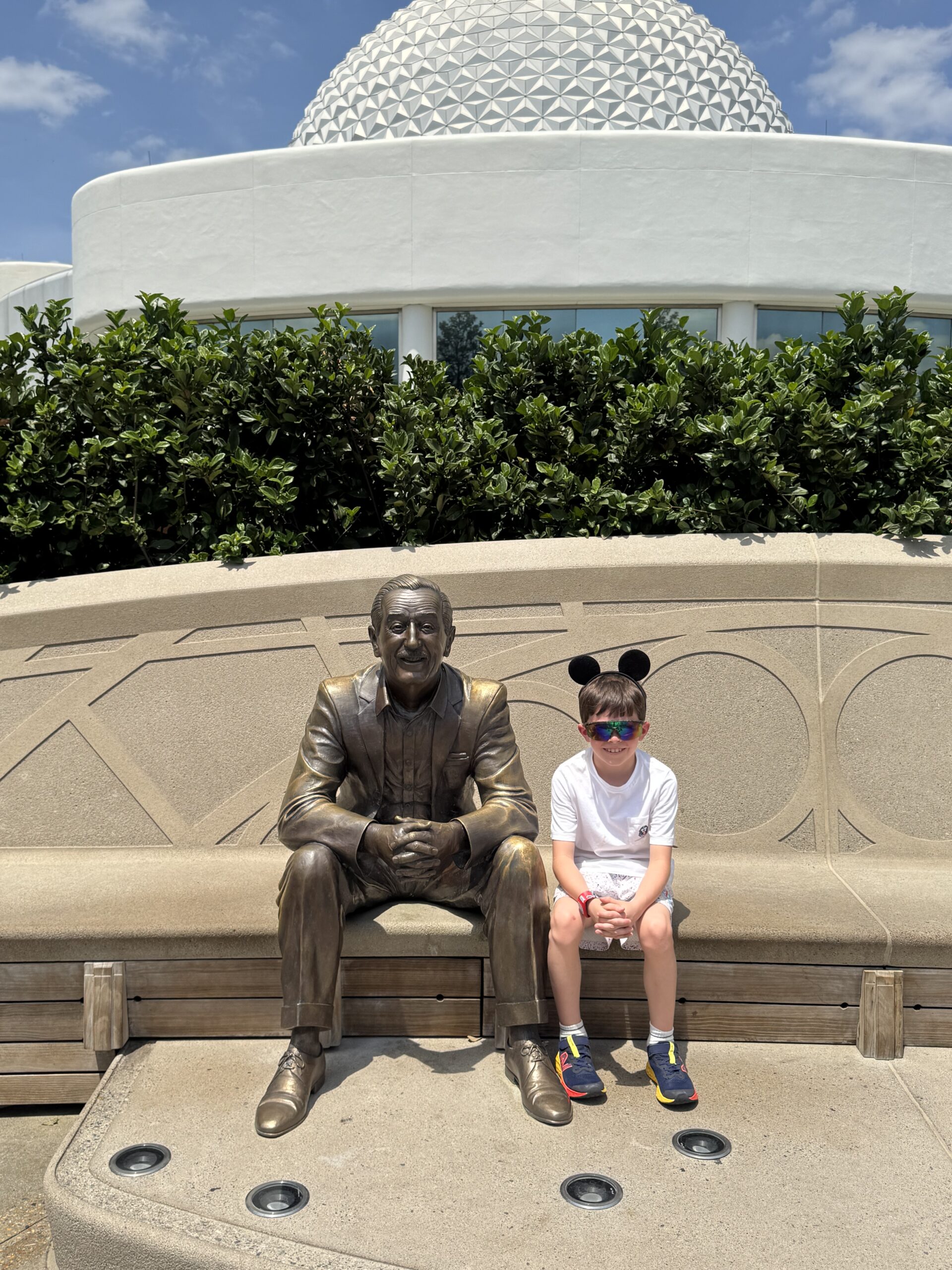 Our first day we did Epcot because that is where the Frozen stuff is and Emma was laser focused on meeting Anna and Elsa. Also they had a princess lunch where she could meet a bunch of the princesses in one swoop and it was easier to book than the Magic Kingdom one (I missed the window on that). Epcot is HUMUNGOUS, I had forgotten, and a ton of walking for the kids with not many rides. We did the Lightning Lane regular passes for this so we pre-booked three rides but our times were really late in the day (5pm +) which sucked with tired little kids. I also spent half the day on my phone trying to re-book ride times and that was a bit stressful. Frozen Ever After and Guardians of the Galaxy (Andrew and Henry’s favorite ride of the entire trip at all three parks) had hour long waits and we did get to skip those long waits, which was worth it. The countries were fun to walk through though, and it was all and all enjoyable but a LONG, very hot day!